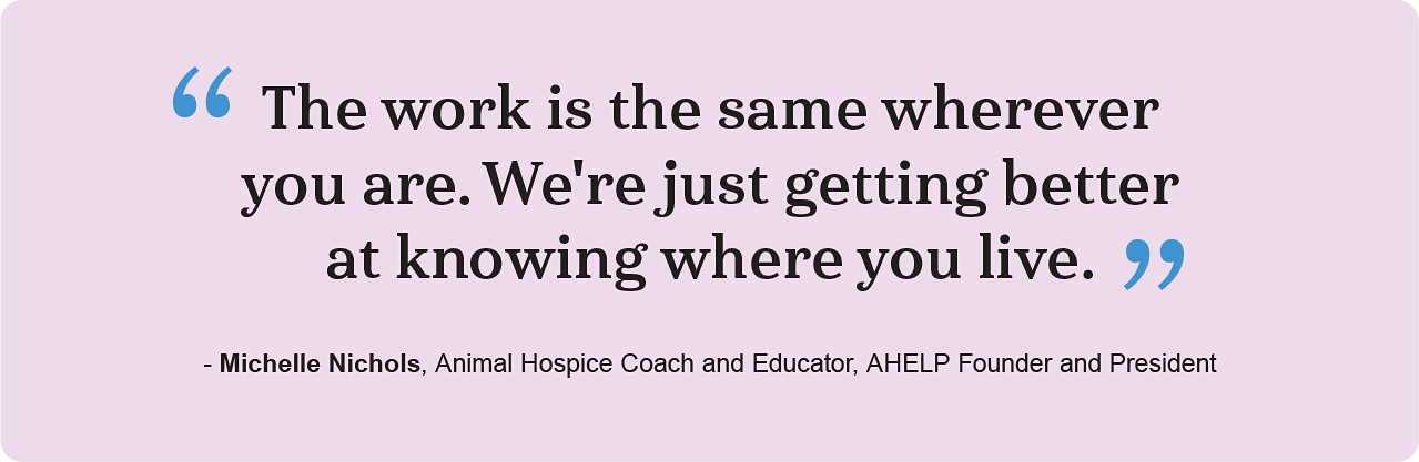 Quote caption: "The work is the same wherever you are. We're just getting better at knowing where you live." ~ Michelle Nichols, AHELP Project